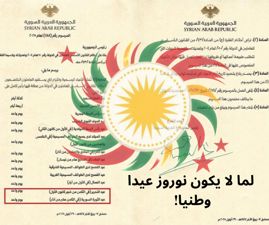 بيان بخصوص المرسوم الذي يقصي عيد نوروز كعيد قومي للكورد